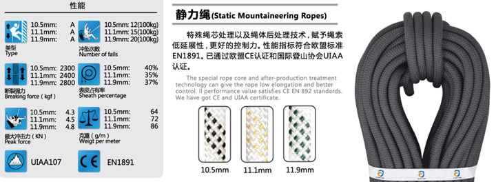 護套零滑移,合理的繩皮占有率大大提高繩索的耐磨特性,產品滿足EN1891標準要求,專業的防水,抗老化技術使繩纜具有更強勁的防水、抗UV,耐磨等性能,嚴格的質量把控,確保繩索每一個結點的穩定性。適合于登山、攀巖、高空作業、訓練、救援等各類復雜環境使用。