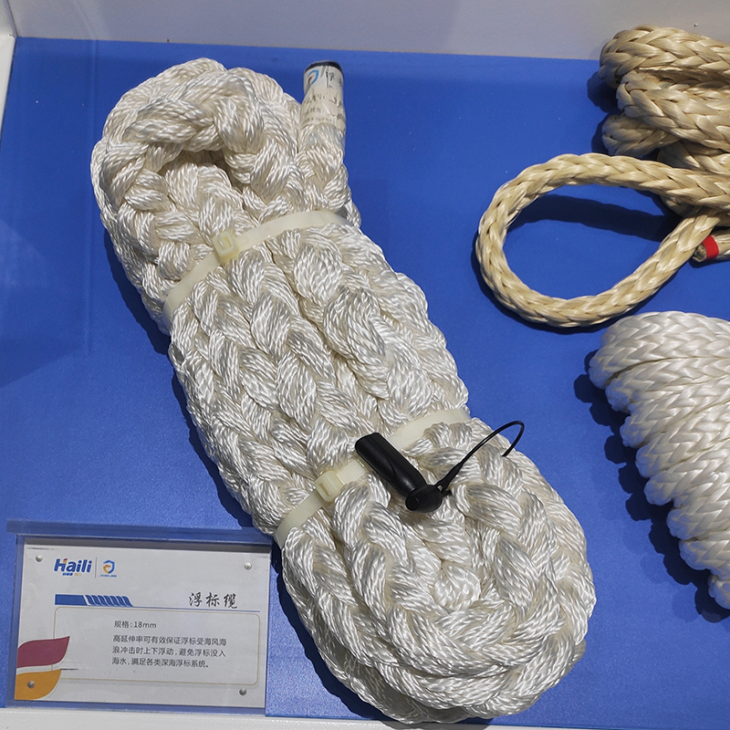 采用優(yōu)質(zhì)高強(qiáng)尼龍纖維,可定制直徑15mm~60mm浮標(biāo)專用繩纜,經(jīng)過特殊后整理工藝,斷裂強(qiáng)力50kN~600kN,延伸率20%~45%,高延伸率可有效保證浮標(biāo)受海風(fēng)海浪沖擊時上下浮動,避免浮標(biāo)沒入海水,這款浮標(biāo)纜繩滿足各類深海浮標(biāo)系統(tǒng)。